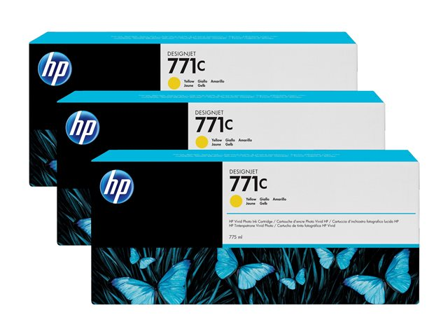 HP 771C - 3-pack - 775 ml - gul - original - bläckpatron - för DesignJet Z6200, Z6600, Z6610, Z6800, Z6810 B6Y34A