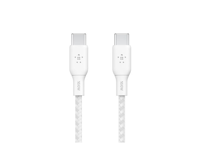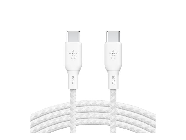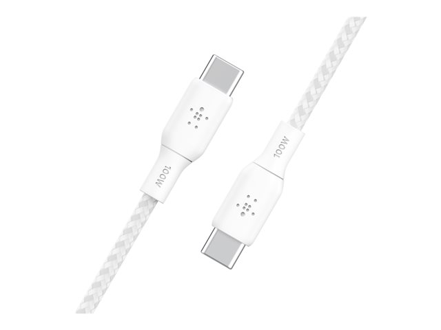 Belkin BoostCharge - USB-kabel - 24 pin USB-C (hane) till 24 pin USB-C (hane) - 3 m - vit CAB014BT3MWH