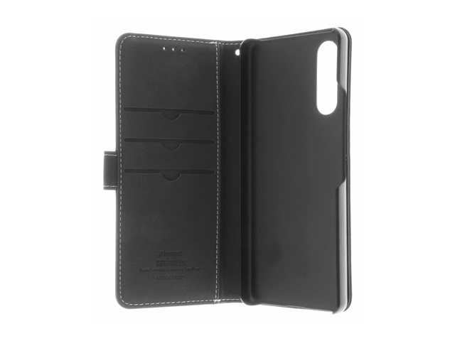 Insmat Exclusive - Vikbart fodral för mobiltelefon - genuint läder, kartong+papper, polykarbonat (PC), PU-beläggning - svart - för Sony XPERIA 10 VI 650-3253