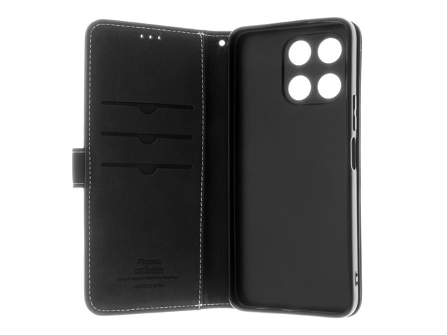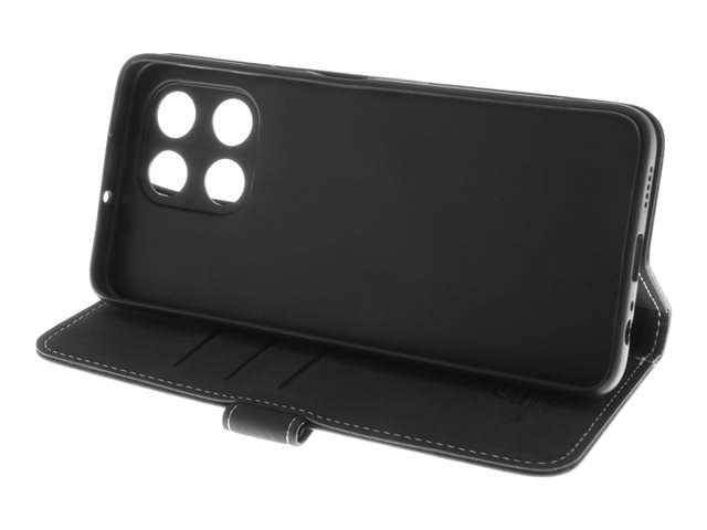 Insmat - Vikbart fodral för mobiltelefon - läder, polykarbonat, kartong+papper+aluminiumfolie, bomullssömmar - svart - för Honor X6a 650-3212