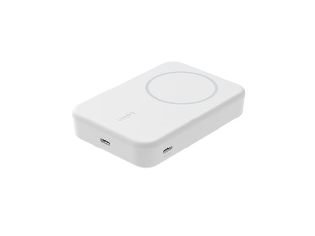 Belkin BoostCharge Pro - Trådlös powerbank - magnetisk med Qi2 - 10000 mAh - 15 Watt - Fast Charge, PD - 2 utdatakontakter (magnetisk, 24 pin USB-C) - på kabel: USB-C - vit - för Apple iPhone 12, 13, 15; Google Pixel 6, 7; Samsung Galaxy S22+, S23, S23+ BPD008BTWH