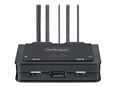StarTech.com 2-Port USB-C Cable KVM Switch, 4K 60Hz DisplayPort Output, Compact KVM with 4ft/1.2m USB Type-C/Audio Integrated Cables, Bus Powered - Remote Push-Button/Hotkey Switching (C2-D46-UC2-CBL-KVM) - Omkopplare för tangentbord/video/mus/ljud - kompakt - 2 x KVM/ljud - 1 lokal användare - skrivbordsmodell C2-D46-UC2-CBL-KVM