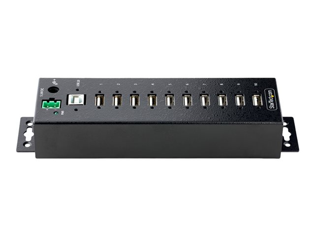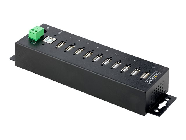 StarTech.com 10-Port Industrial USB 2.0 Hub, Rugged USB Hub w/15kV Air/8kV Contact ESD Level 4 Protection, DIN/Wall/Desk Mountable USB-A Hub, Multiport USB Hub with Locking Ports - Metal Construction (USB210AIND-USB-A-HUB) - Hubb - industriell - 10 x USB 2.0 - skrivbordsmodell, DIN-skenmonterbar, väggmonterbar - TAA-kompatibel
