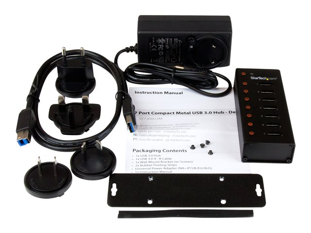StarTech.com USB 3.0-hubb med 7 portar – skrivbords- eller väggmonterbart metallkabinett - Hubb - 7 x SuperSpeed USB 3.0 - skrivbordsmodell, väggmonterbar - för P/N: BNDTBUSB3142, PEXUS313AC2V, PEXUSB311A1E, PEXUSB312A2, PEXUSB314A2V, PEXUSB314A2V2 ST7300U3M