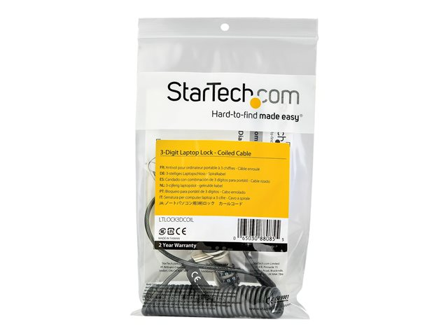 StarTech.com 6ft (1.8m) Self-Coiling Laptop Cable Lock, Portable 3-Digit Combination Security Cable Lock for K-Slot Laptop/Computer/Desktop/Device, Coiled Anti-Theft Steel Cable Combo Lock - 6 ft Coiled Cable Lock (LTLOCK3DCOIL) - Lås för säkerhetskabel - 1.8 m