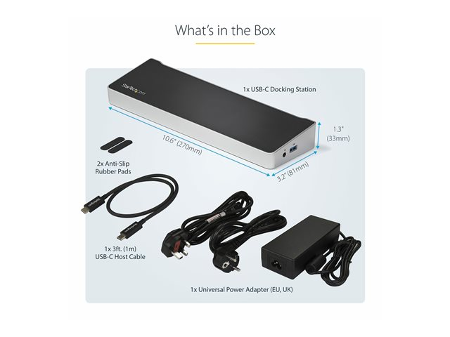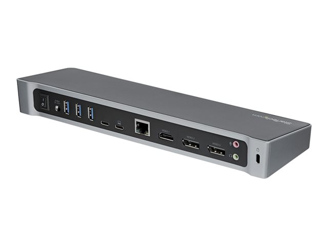 StarTech.com 4K USB-C-docka för tre skärmar med 5 USB 3.0-portar - 100W PD - Dockningsstation - USB-C - HDMI, DP - 1GbE - 100 Watt - TAA-kompatibel